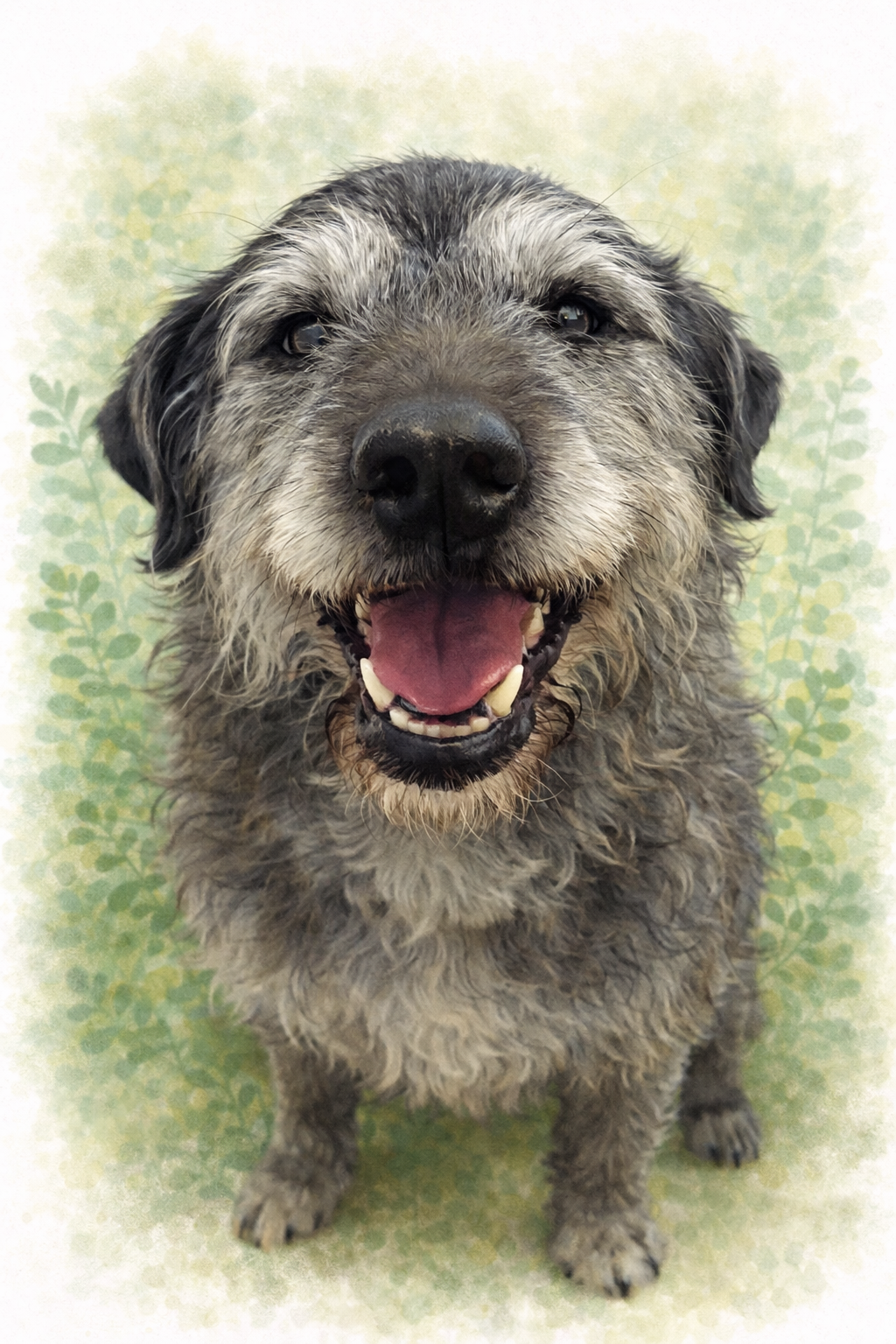 Rescued and relocated to the Grove household with no formal interview process, Banjo slid into family life like he had always been there — tail moving, tongue out, absolutely no complaints about the arrangement. He is the Grove family's most enthusiastic member and also its most uncomplicated one. His needs are simple. A good walk. A warm nap. Someone to play with. The absence of car rides.